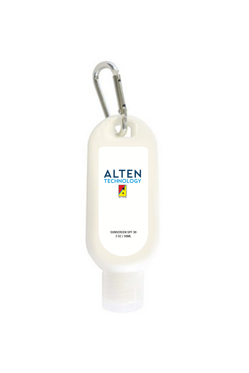 Shield yourself from harmful sun rays with our tottle bottle SPF 30 sunscreen. This sunscreen, infused with a tropical scent, contains 2 oz / 59 ml of protective goodness. FDA-approved, it is easy to apply and provides a clean, non-greasy feel—perfect for a delightful day in the sun. Whether you’re heading to a golf outing, picnic, or a beach day, this sunscreen is a must-have. Plus, it comes with a convenient carabiner for added practicality.